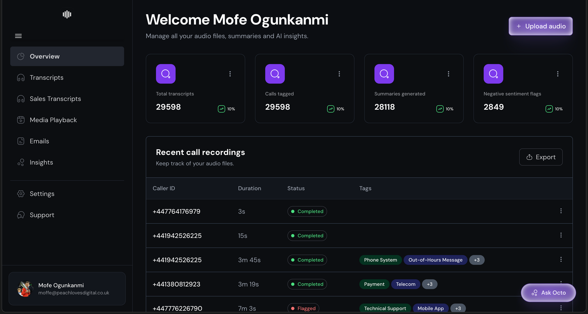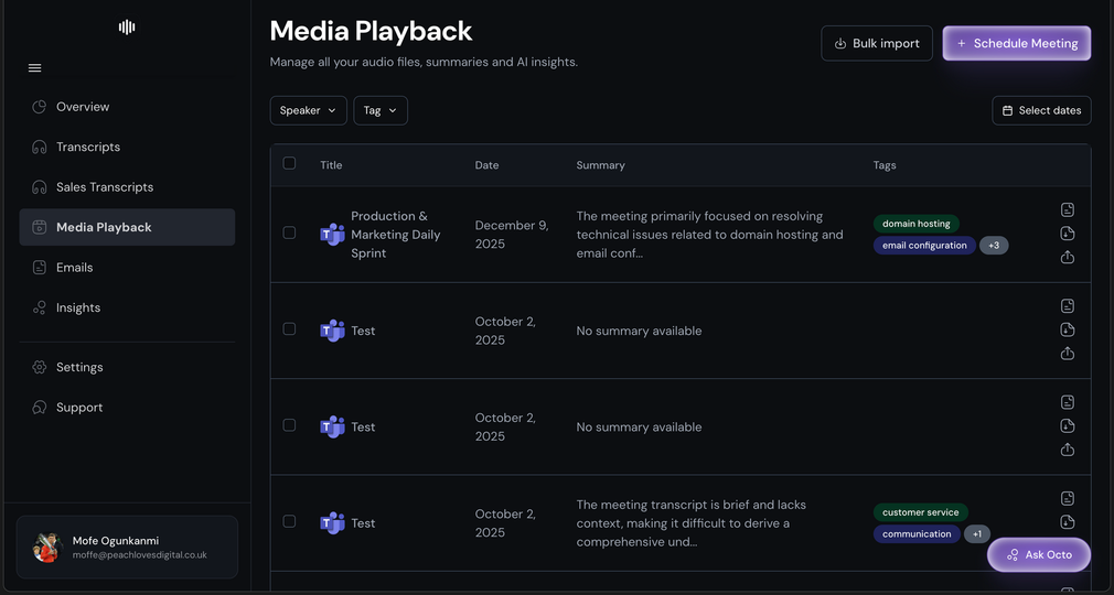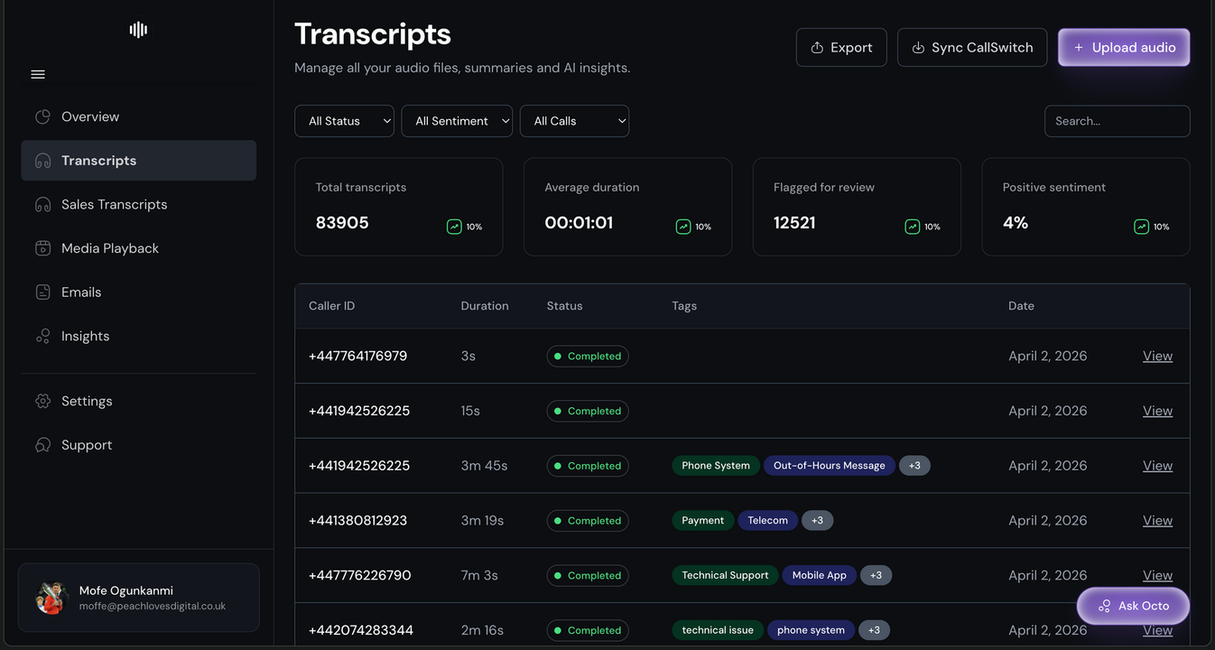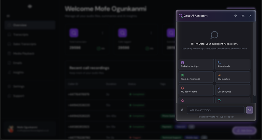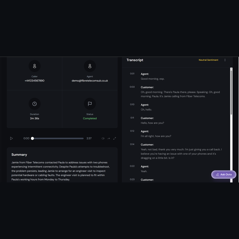 Octopush X unifies calls, video meetings, and emails into one intelligence layer. It analyses tone, intent, objections, next steps, and compliance risk so sales, success, and leadership teams can act on every customer interaction.