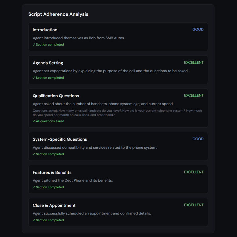 Surface compliance issues, sensitive language, and script drift before they become problems.